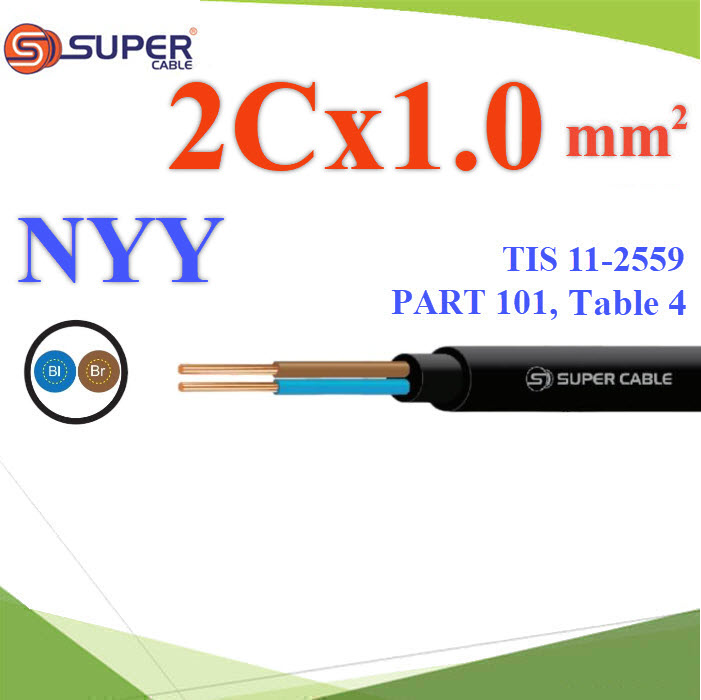 สายไฟ NYY ภายนอก 2x1.0 Sq.mm. S.SUPER 450/750V ร้อยท่อฝังดิน หรือฝังดินโดยตรง