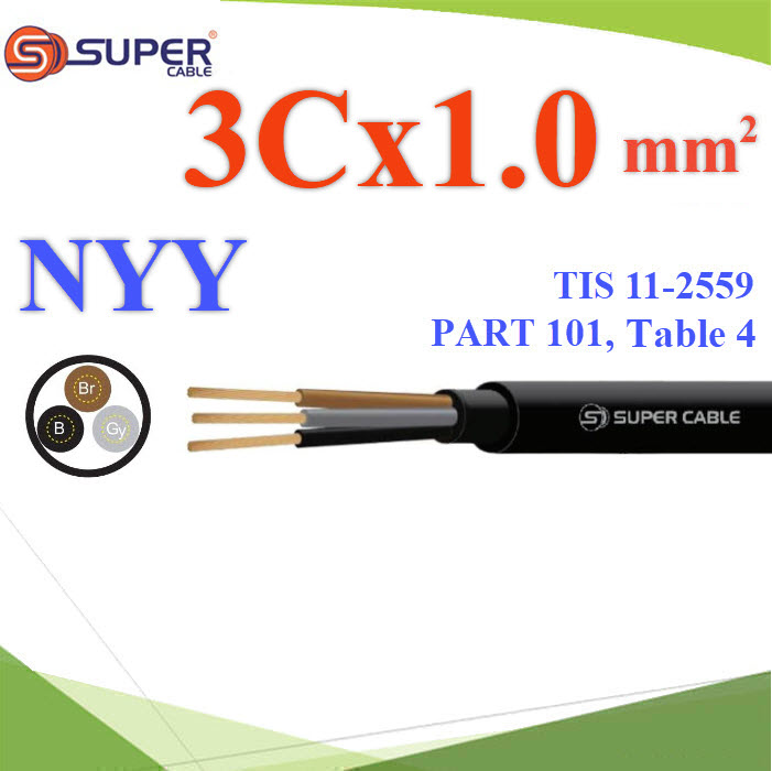 สายไฟ NYY ภายนอก 3x1.0 Sq.mm. S.SUPER 450/750V ร้อยท่อฝังดิน หรือฝังดินโดยตรง