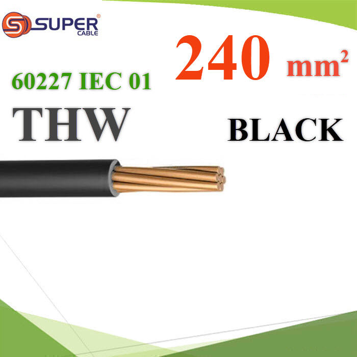 สายไฟ THW 60227 IEC01 ทองแดงฉนวนพีวีซี ขนาด 240 Sq.mm. สีดำ (ระบุความยาว)